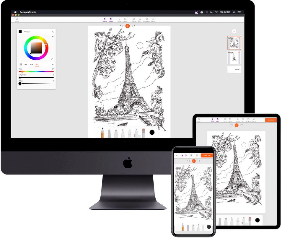 Le premier grand chantier sur lequel j’ai travaillé est la transformation d’Imagink, l’application historique d’iskn, en Repaper Studio, une toute nouvelle application conçue pour accompagner le lancement de Repaper, le nouveau produit de la marque.